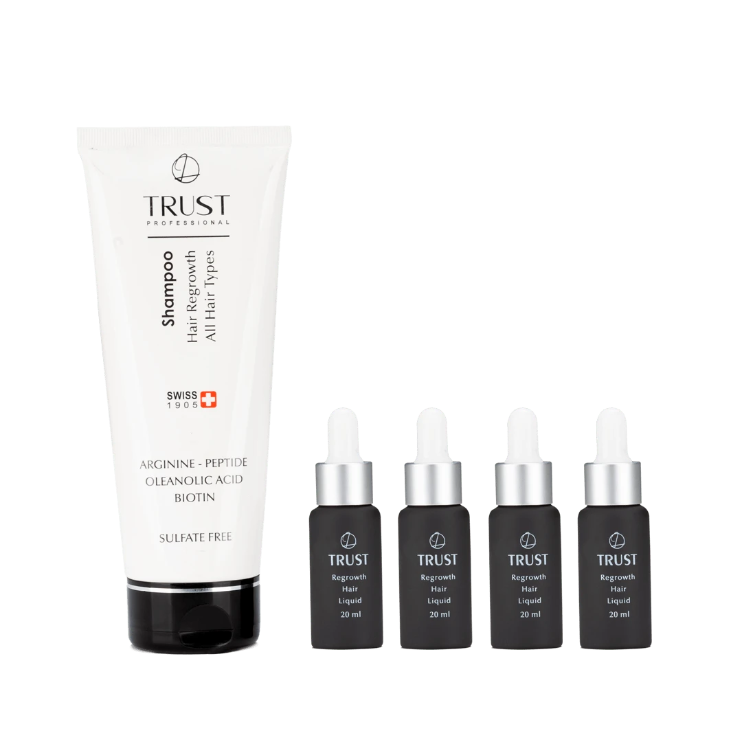 این کیت، مختص افرادیست که بارها از محصولات ضد ریزش موجود در بازار استفاده کردهاند اما نتیجه دلخواه خود را کسب نکردهاند! کیت تخصصی رویش مجدد تراست با استفاده از ترکیبات طبیعی، برای تاثیر گذاری بیشتر طراحی شده است و در مدت زمان 6 ماه، اثرات چشمگیری بر رشد مو خواهد داشت.