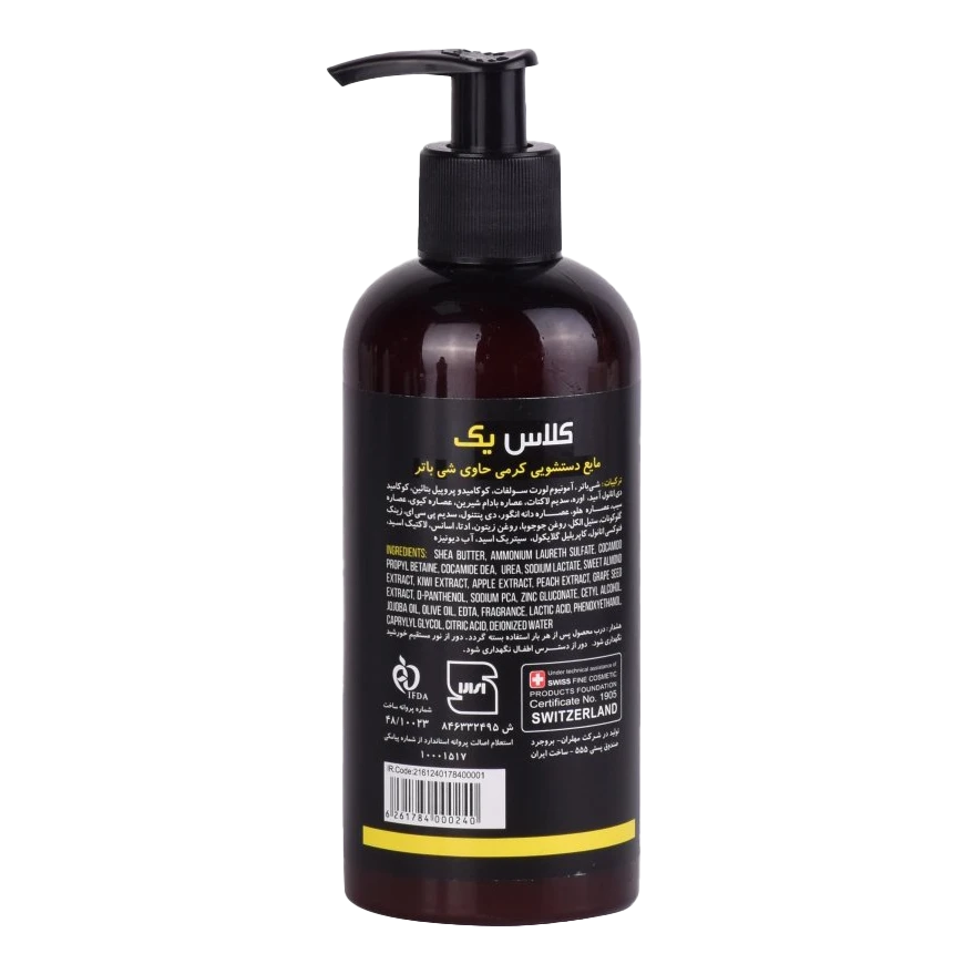 مایع دستشویی کرمی کلاس یک حاوی عصاره شی باتر