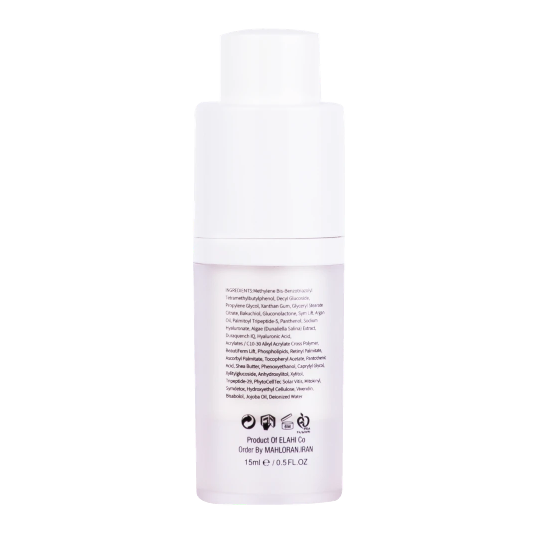 - مهار رادیکالهای آزاد و رفع چین و چروکهای سطحی دور چشم با داشتن ترکیبات آنتیاکسیدانی قوی مثل باکوکیول، روغن آرگان، عصاره جلبک، آسکوربیلپالمیتات، عصاره سلول بنیادی دانه انگور، میتوکینیل، سیمدتوکس و توکوفریلاستات