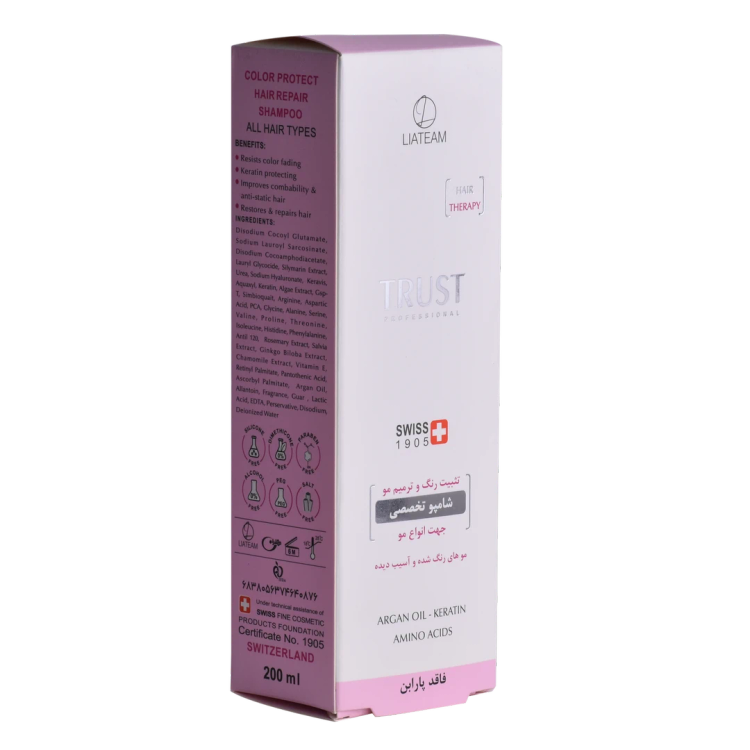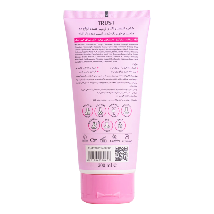 شامپو تخصصی تثبیت رنگ تراست trust مخصوص موهای رنگ شده فری سولفات