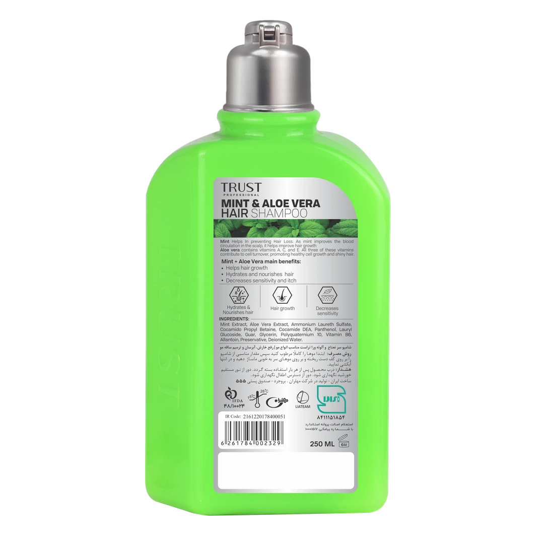 شامپو سر نعناع و آلوئهورا تراست trust ابرسان پوست سر تقویت مو